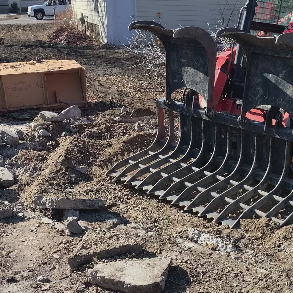 The TMG-SG72 Skid Steer Skeleton Rock Grapple features twin hydraulic cylinder arms that can produce a grappling capacity of up to 2500 lb. A versatile attachment for your skid steer that can be used for a variety of applications including brush/log pick up, recycling, rock raking, scrap metal sorting and any sort of moving chore around your acreage, farm or job site.