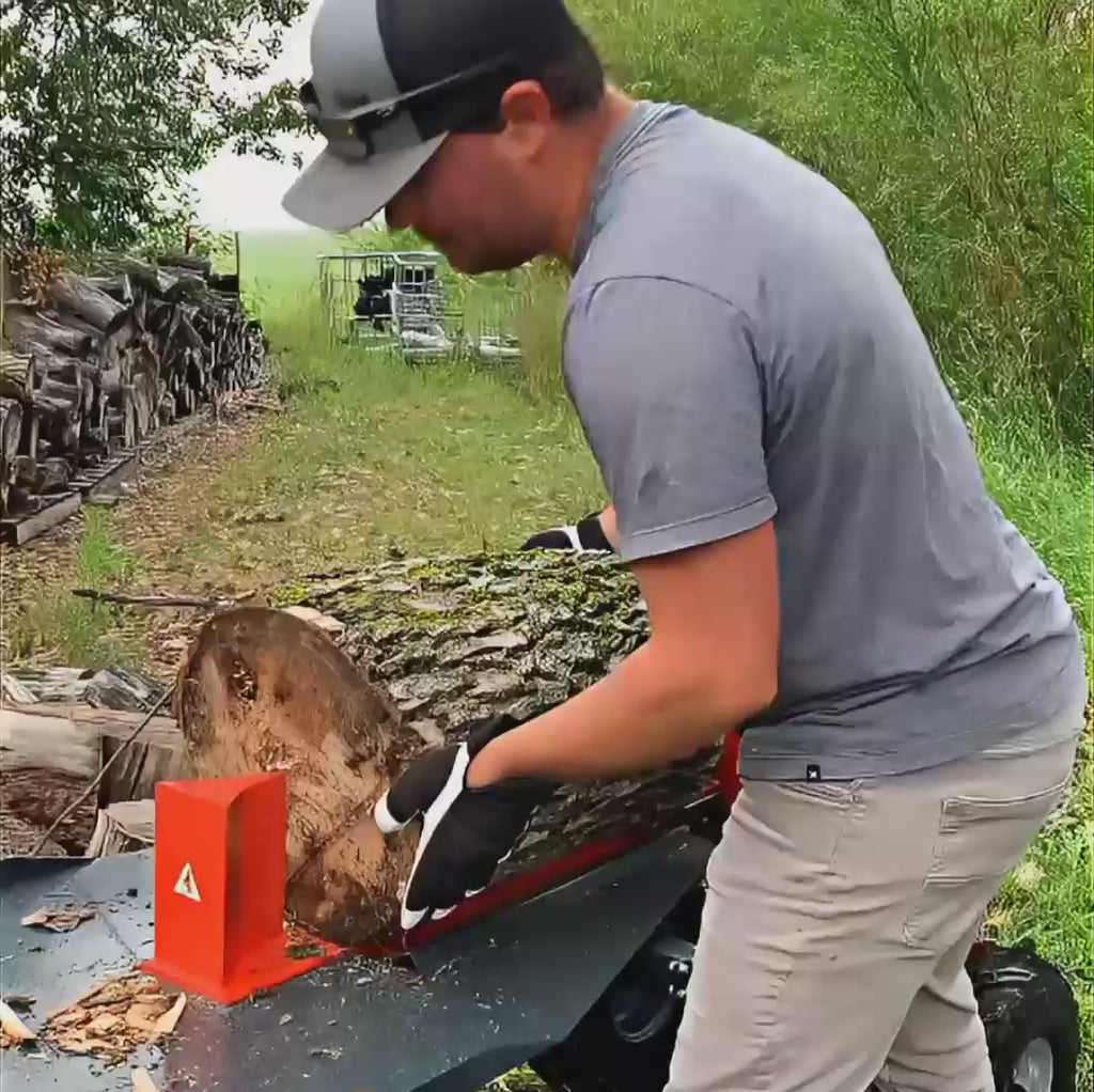 This splitter can handle logs up to 28" in diameter and 24" in length. The H-beam and steel worktable sit 28" off the ground so you barely have to bend over to add logs or remove splitted wood, making what used to be hard work into a simple and efficient task. Equipped with 8" cutting wedge for easy splitting, and also has cast iron cylinder liners to provide long lasting durability.