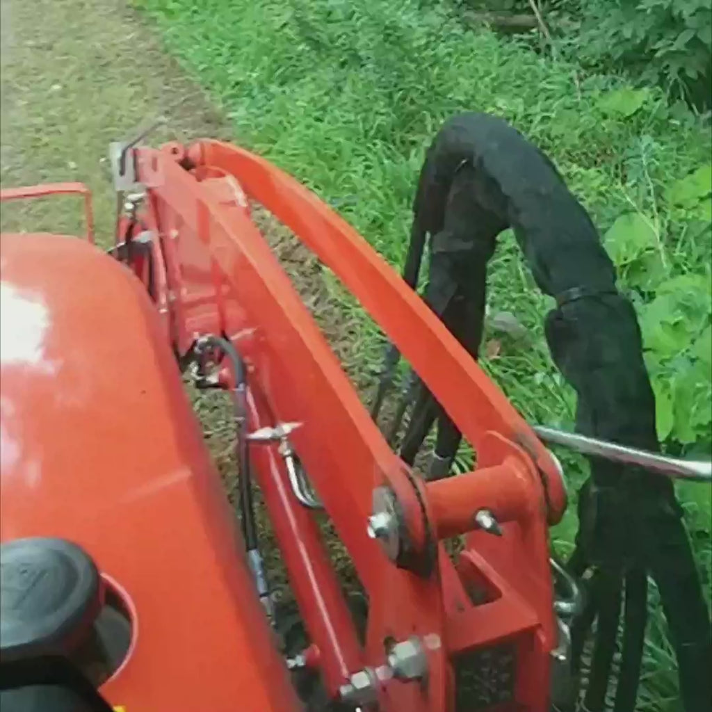 The TMG-TFMO70 Ditch Bank Flail Mower is engineered to efficiently cut uneven, overgrown, and sloped terrain. With its heavy-duty 750 lb frame and forged flail hammers, this mower tackles tough grass and weeds with ease. The hydraulically controlled right-side offset arm pivots 65° downward and 90° upward for precise cutting on ditches, riverbanks, and slopes, ensuring an even finish every time.