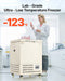 58L Ultra Low Temperature Freezer, −40°F to −123°F Adjustable Range, 304 Stainless Steel Liner, Digital Display with Rollers, DOBA-LF58